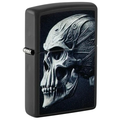 Zippo Windproof Lighter, Cyberpunk Skull Design Matt Black, Colour Image Refillable, Reusable, Comes in Gift Box Made USA