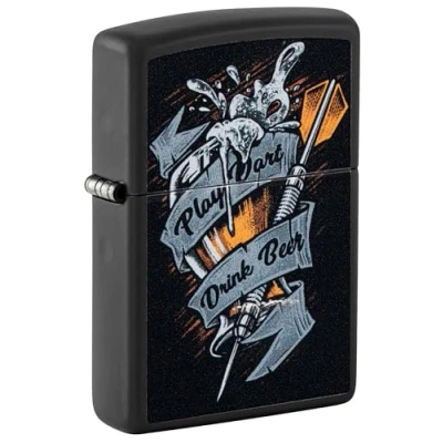 Zippo Windproof Lighter, Darts Design Matt Black, Colour Image Refillable, Reusable, Comes in Gift Box Made USA