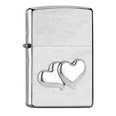 Zippo Windproof Lighter Dubble Heart Chrome Brushed, Mini Emblem Refillable, Lifetime Use Adjustable Flame Gift Box Metal Construction Made in USA