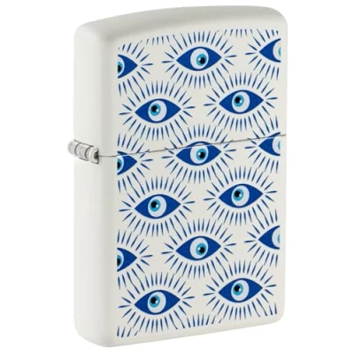 Zippo Windproof Lighter, Evil Eye, White Mat, Colour Image, Refillable, Reusable, Design, Gift Box, Made in USA