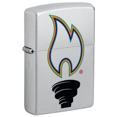 Zippo Windproof Lighter, Flame Torch, Satin Chrome, Colour Image, Refillable, Reusable, Design, Gift Box, Made in USA