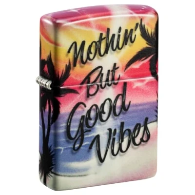 Zippo Windproof Lighter with Good Vibes Design: Glow-in-the-dark finish and bright, uplifting motif – radiates positive energy and cheerful flair, even in the dark Windproof & reliable: Made from durable brass and featuring a windproof flame, this Zippo Windproof Lighter is the perfect companion in any weather. Whether camping, hiking, or in everyday life – it ensures a reliable ignition in every situation Refillable, reusable & with a lifetime warranty: designed for durable use, the refillable Zippo Windproof Lighter is a sustainable choice and is delivered unfilled. For optimal performance, we recommend original Zippo premium lighter fluid, flints, and wicks The legendary Zippo click & cult status: the unique Zippo click sound, known from films, music, and pop culture, was patented in the USA in 2018, highlighting the cult status of this Windproof Lighter. It is a symbol of tradition and quality perfect gift: whether for Christmas, a birthday, an anniversary, or as a classy collector's item – this Zippo lighter is the ideal gift for men and women. Delivered in a high-quality gift box, it is a stylish highlight for lighter enthusiasts