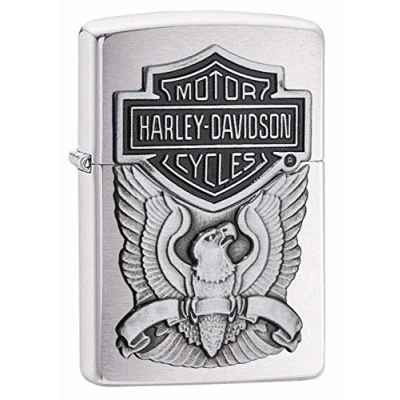 Zippo Windproof Lighter Harley Davidson Brushed Chrome, Emblem Refillable, Lifetime Use Adjustable Flame Gift Box Metal Construction Made in USA