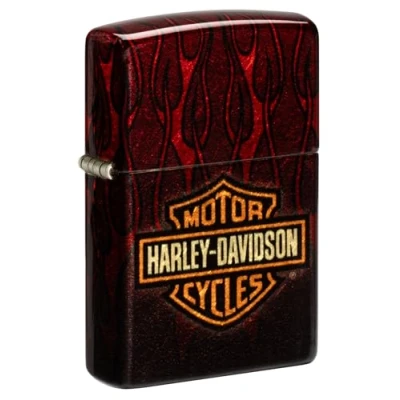 Zippo windproof lighter in Harley-Davidson flames design: Perfect for fans of the cult brand with a stylish look that will be eye-catching with every use and simply puts a good mood in everyday life Windproof and reliable: Made from durable brass and with a windproof flame, this Zippo windproof lighter is the perfect companion in any weather; whether camping, hiking or in everyday use, it is ensured to reliably light up in any situation Refillable and reusable: Designed for durable use: The refillable Zippo windproof lighter is a sustainable choice and comes unfilled; for optimal performance, we recommend original Zippo premium lighter fuel, flints and wicks. - The legendary Zippo click and cult status: The unique Zippo click sound, known from movies, music and pop culture, received a patent in the USA in 2018 and highlights the cult status of this lighter; it is a symbol of tradition and quality The perfect gift. Whether for Christmas, birthday, anniversary or as an elegant collector's item, this Zippo lighter is the ideal gift for men and women. Supplied in a high-quality gift box, it is a stylish highlight for lighter aficionados.