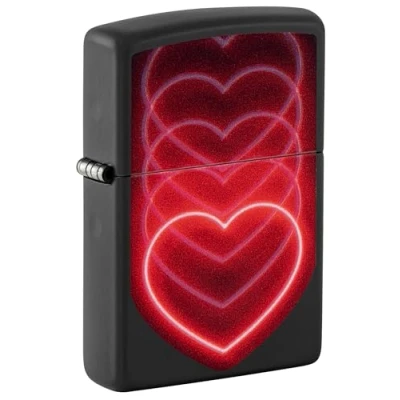 Zippo Windproof Lighter, Hearts Design Matt Black, Black Light Refillable, Reusable, Comes in Gift Box Made USA