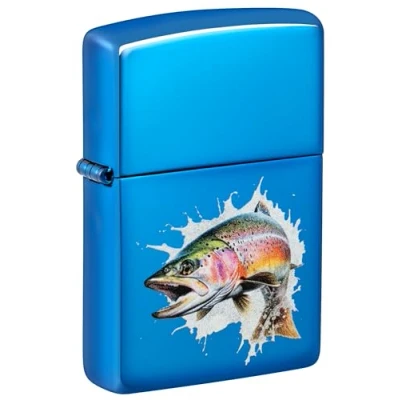 Zippo Windproof Lighter, Jumping Fish, High Polish Blue, Colour Image, Refillable, Reusable, Design, Gift Box, Made in USA