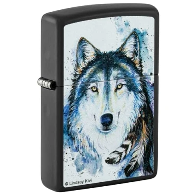 Zippo Windproof Lighter, Lindsay Kivi Design Matt Black, Colour Image Refillable, Reusable, Comes in Gift Box Made USA