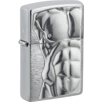 Zippo Windproof Lighter, Man’s Torso 3D Design Brushed Chrome, Emblem Attached Refillable, Reusable, Comes in Gift Box Made USA
