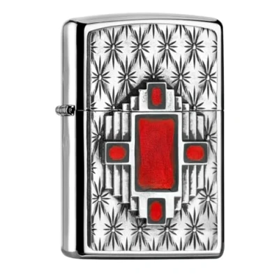 Zippo Windproof Lighter, Red Diamond Design High Polished Chrome, Emblem Refillable, Reusable, Comes in Gift Box Made USA
