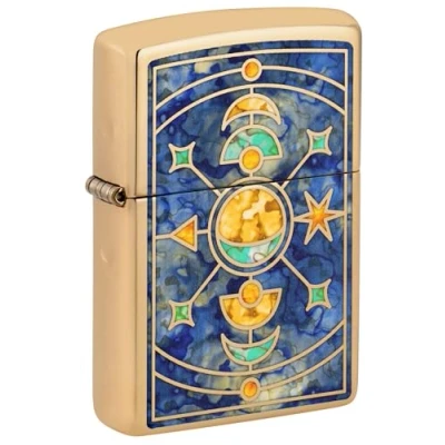 Zippo Windproof Lighter, Star Constellation Design High Polished Brass, Fusion Refillable, Reusable, Comes in Gift Box Made USA