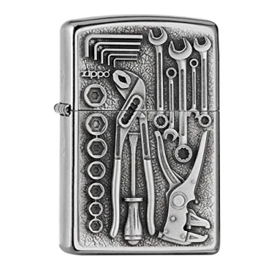Zippo Windproof Lighter Toolbox Street Chrome, Emblem Refillable for Lifetime Use Adjustable Flame Gift Box Metal Construction Made in USA