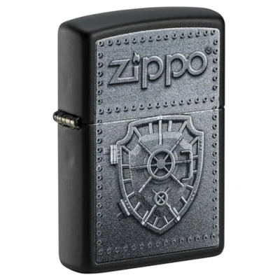 Zippo Windproof Lighter, Vault Design Matt Black, Colour Image Refillable, Reusable, Comes in Gift Box Made USA
