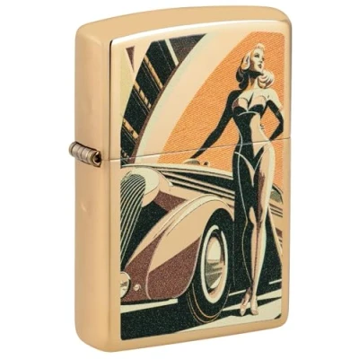 Zippo Windproof Lighter Vintage Car and Woman Design Refillable Gift Box Metal Made in USA