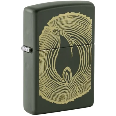 Zippo Windproof Lighter, Wood Ring Design Matt Green, Laser Engraving Refillable, Reusable, Comes in Gift Box Made USA