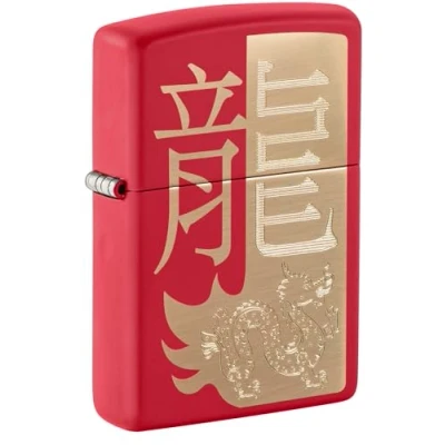 Zippo Windproof Lighter, Year of the Dragon 2024 Design Matt Red, Laser Engraved/Auto Engraved Refillable, Reusable, Comes in Gift Box Made USA