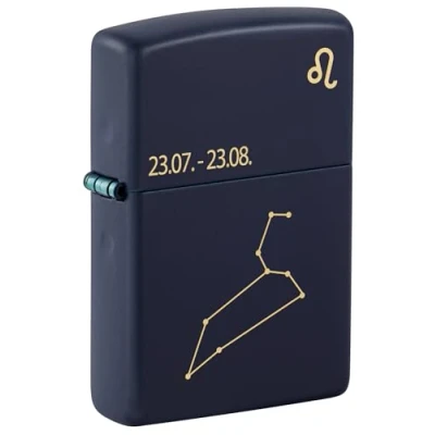 Zippo Windproof Lighter, Zodiac Leo Design Matt Navy Blue, Laser Engraving Refillable, Reusable, Comes in Gift Box Made USA