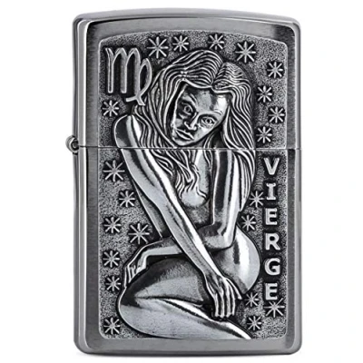Zippo Windproof Lighter, Zodiac Virgo Design Brushed Chrome, Emblem Refillable, Reusable, Comes in Gift Box Made USA
