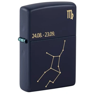 Zippo Windproof Lighter, Zodiac Virgo Design Matt Navy Blue, Laser Engraving Refillable, Reusable, Comes in Gift Box Made USA