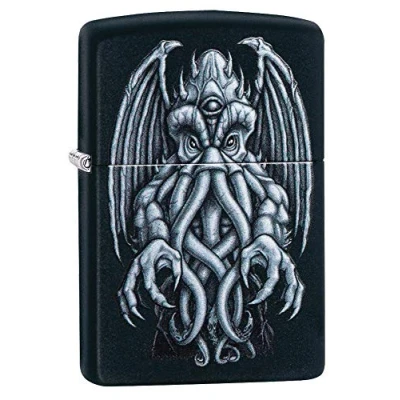 Zippo Winged Monster Design Color Image, Black Matte Windproof Lighter, refillable, in gift box,One Size,49122