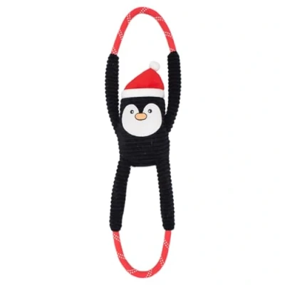 ZippyPaws Holiday RopeTugz, Squeaky and Plush Rope Tug Dog Toy Penguin