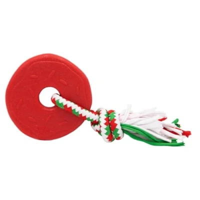 ZippyPaws ZippyTuff Teethers, Tough Chew Dog Toy for Young Puppies, Holiday Themed, Donut Red