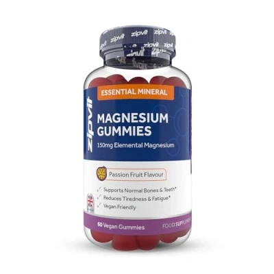 Zipvit Magnesium Citrate Gummies, 150mg Elemental Magnesium, Bone & Energy Support for Men Women 60 Vegan 30 Day Supply, Passionfruit Flavour
