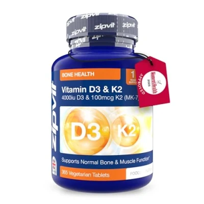 High Strength for Daily Immune & Bone Support: Each micro tablet contains 4000 IU of Vitamin D3 plus and 100mcg of Vitamin K2 MK-7, this powerful duo helps maintain normal immune function, supports strong bones, and guides calcium to where your body needs it most. Supports Heart & Artery Health: Our formula uses the superior MK-7 form of Vitamin K2, known for its longer activity in the body, to help keep calcium out of arteries and supporting normal blood clotting and overall cardiovascular function. Smart Calcium Utilisation: D3 helps your body absorb calcium, while K2 ensures it’s properly directed into bones, working together to promote bone density and reduce the risk of calcium build-up in soft tissues. Vegetarian-Friendly & GMP Certified: We understand that everyone has unique dietary needs, which is why our vegetarian tablets are free from gluten, GMOs, dairy, and wheat. Every Zipvit product is GMP certified, meaning that every stage from sourcing ingredients to packaging, meets strict criteria for safety, quality, and purity giving you complete peace of mind. Trusted for Over 25 Years: For over 25 years, Zipvit has been a trusted name in health and wellness. We are committed to quality, transparency, and affordable pricing. Trusted by millions, we support your health journey every step of the way.