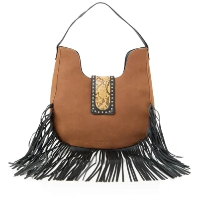 fringe shoulder bag Faux Suede Snakeskin look flap Detachable and adjustable shoulder strap Textile interior