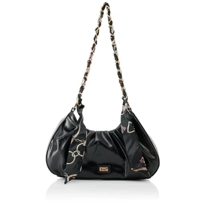 Elegant shoulder bag Made from soft faux leather Shirred topline Link chain with cloth Gold logo plate