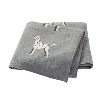 Ziyunlong Baby Blanket 100% Cotton Knitted for Newborn with Cute Dog, 100 x 80cm Grey