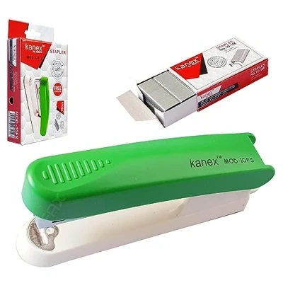 Staple Size - No. 10, Loading Capacity – 50 Staples (No. 10), Holds full strips of 100 staples. Stapling Capacity – 20 Sheets of 75 – 80 gsm paper, Throat Depth – 55mm, Loading Type – Manual, Stapling Type – Conventional, Tracking – Yes. Build-in staple remover at the end and reload indicator. Quick loading mechanism. Plastic body super stapler with quality steel components. Perfect for School Office Home Travel Use. Perfect Handy Stapler. Made of durable metal and plastic for reliable strength; sleek finish offers a professional appearance.
