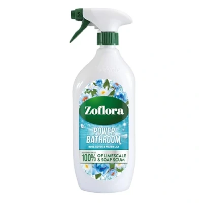 BURSTING WITH FRAGRANCE: A fresh blend of water lillies, fused with a heart of rose and jasmine, finished with a deep base of sandalwood LONG LASTING FRAGRANCE: This powerful, unique formula fills the room with beautiful, perfumer-developed fragrance that lasts all day QUICK & EFFECTIVE CLEANING: removes up to 100 percent of soap scum and limescale whilst preventing further build-up of limescale leaving bathroom surfaces streak-free and sparkling MULTI-SURFACE CLEANING: Suitable for use across multiple surfaces around the home including Bathtubs, Toilets, Showers, Sinks and Tiles DIRECTIONS: For effective cleaning, turn nozzle to on position and keep bottle upright; Spray directly onto bathroom surfaces ensuring full coverage, then wipe away with a damp cloth or sponge ALSO AVAILABLE IN: perfumer-developed fragrance Caribbean Grapefrit & Lime Power Bathroom 800ML, and Sweet Freesia and Jasmine Power Bathroom 800ML; Zoflora fills your home with a beautiful, perfumer-developed fragrance and contains patented odour elimination technology, tested against many household malodours including bins, drains and pet odours EXPLORE THE ZOFLORA RANGE: Discover a diverse selection of captivating fragrances and specialized formulations within the Zoflora range, offering an array of choices to suit your cleaning needs; From bathroom cleaners that provide effective and hygienic cleaning to floor wipes that maintain cleanliness and freshness, and multi-purpose sprays that offer versatile cleaning solutions