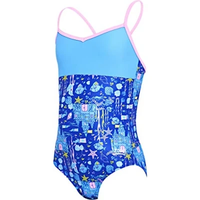 Zoggs Girls' Undersea V Back Swimsuit, Girls, 513919021, Blau/Mehrfarbig, EU/DE 92 (2 jahre)