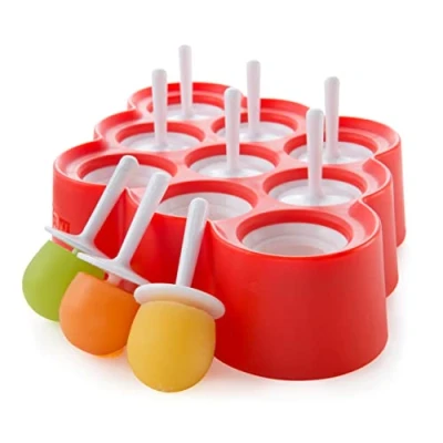 Pops slide out of the moulds easily straight from the freezer, no need to warm the mould first Reusable pop sticks have ridged designs that allow pops to adhere securely Includes: 1 mini pop mould, 9 sticks with drip guards BPA and phthalate free