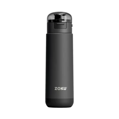 This vacuum-insulated drinks bottle from Zoku is made with a corrosion-resistant 18/8-grade stainless steel body and keeps water chilled for longer. Finished with a durable powder coating, it's easy to open with one push to access the high-flow mouthpiece. This design is completed with a locking feature and a soft-touch carrying loop.