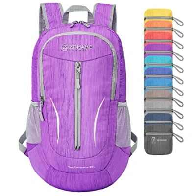 ZOMAKE Foldable Backpack Lightweight 25L Packable Small Backpacks Water Resistant,Hiking for Outdoor Travel Walking,Camping (Purple)
