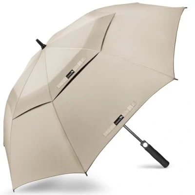 ZOMAKE Golf Umbrella Windproof and Rainproof 62in, Large Strong, Big Golfing Brolly Unbreakable Double Canopy for Men Women (Apricot)