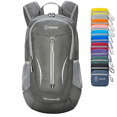 ZOMAKE Ultra Lightweight Foldable Backpack Packable Rucksack 25L Small Backpacks Travel Daypack Water Resistant For Men Women Outdoor Hiking walking(Dark gray)
