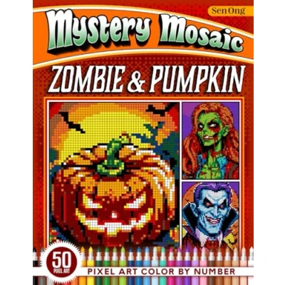 Zombie & Pumpkin Mystery Mosaics Color by Number: 50 Pixel art Horror for Relaxation and Fun