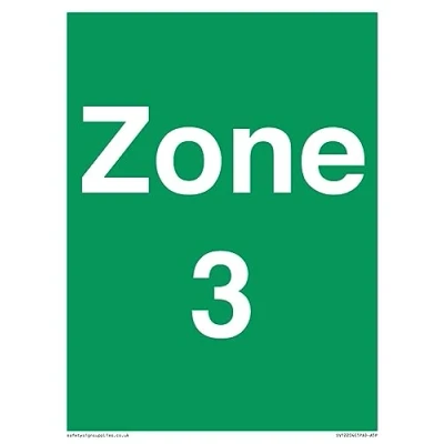No Symbol This sign is made from plastic semi-rigid 1mm 1mm thin plastic sign, can be screwed, stuck with adhesive, or attached with cable ties. Not suitable for hanging. A5 portrait Sign Text: Zone 3