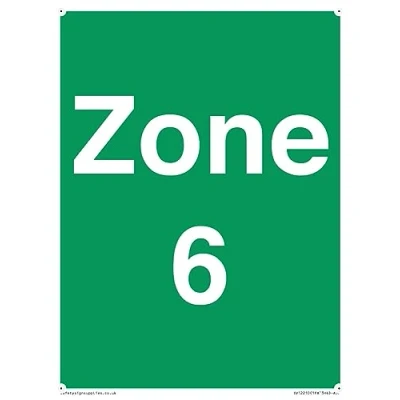 No Symbol This sign is made from plastic semi-rigid 1mm 1mm thin plastic sign, can be screwed, stuck with adhesive, or attached with cable ties. Not suitable for hanging. A5 portrait Sign Text: Zone 6