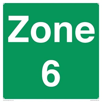 No Symbol This sign is made from plastic semi-rigid 1mm 1mm thin plastic sign, can be screwed, stuck with adhesive, or attached with cable ties. Not suitable for hanging. S30 square Sign Text: Zone 6