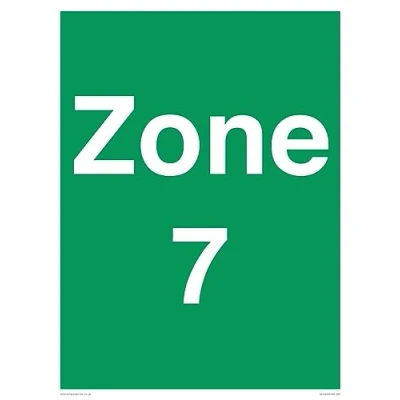No Symbol This sign is made from plastic semi-rigid 1mm 1mm thin plastic sign, can be screwed, stuck with adhesive, or attached with cable ties. Not suitable for hanging. A3 portrait Sign Text: Zone 7