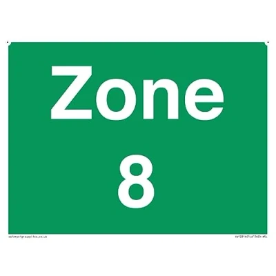 No Symbol This sign is made from plastic semi-rigid 1mm Comes with3mm holes on top corners. 1mm thin plastic sign, can be screwed, stuck with adhesive, or attached with cable ties. Not suitable for hanging. A5 landscape Sign Text: Zone 8