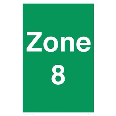 No Symbol This sign is made from plastic semi-rigid 1mm 1mm thin plastic sign, can be screwed, stuck with adhesive, or attached with cable ties. Not suitable for hanging. A4 portrait Sign Text: Zone 8