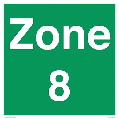 No Symbol This sign is made from plastic rigid 3mm 3mm plastic sign with foam core. Can be screwed, stuck with adhesive or hung with a hanging kit. Not suitable for cable ties. S30 square Sign Text: Zone 8