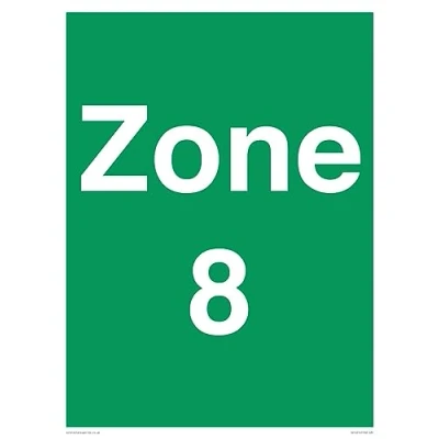 No Symbol This sign is made from plastic semi-rigid 1mm 1mm thin plastic sign, can be screwed, stuck with adhesive, or attached with cable ties. Not suitable for hanging. A3 portrait Sign Text: Zone 8