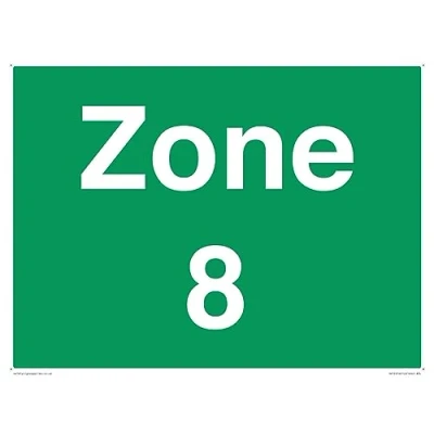 No Symbol This sign is made from plastic semi-rigid 1mm Comes with4mm Corner Holes. 1mm thin plastic sign, can be screwed, stuck with adhesive, or attached with cable ties. Not suitable for hanging. A3 landscape Sign Text: Zone 8