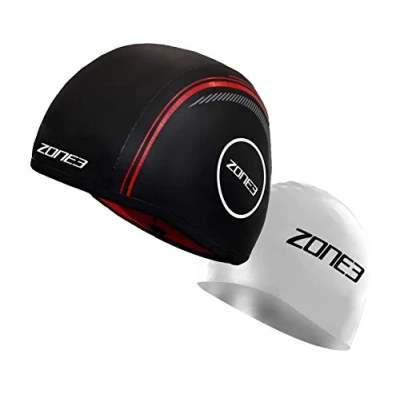 Zone3 Neoprene Strapless Swim Cap (Black/Red, Small)