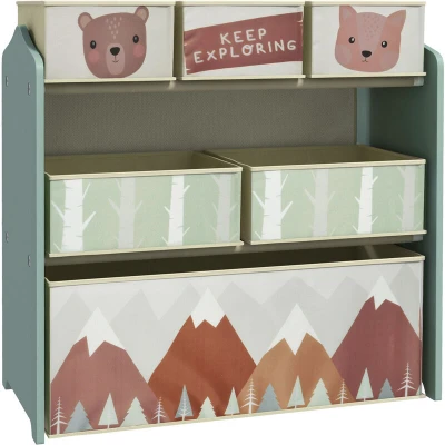 ZONEKIZ Kids Storage Unit, Childrens Toy Organiser, with 6 Fabric Bins, for Bedroom, Nursery, 63 x 30 66cm, Green